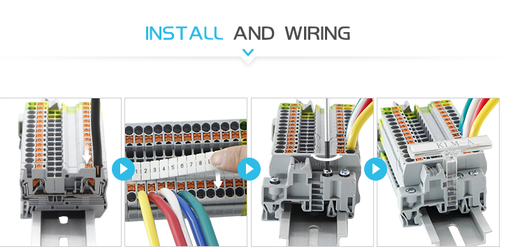 The main advantages of this terminal block, within advanced push in connection technology, tool free design, saving time and human power. With special contact spring, easy insertion and guarantee high level contact quality. make wire connection so easily.
