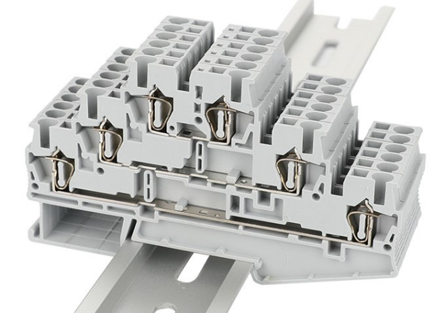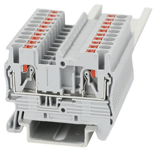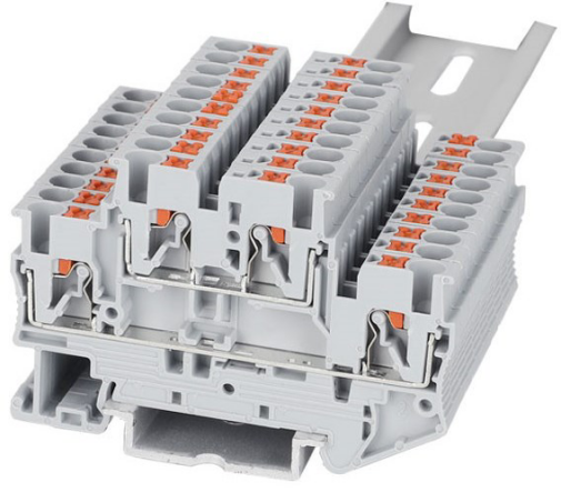 Dual level terminal blocks have two levels of contacts; this arrangement saves space and simplifies wiring. Multi-level products may use a bridge to connect one contact level to another for increased circuit flexibility.