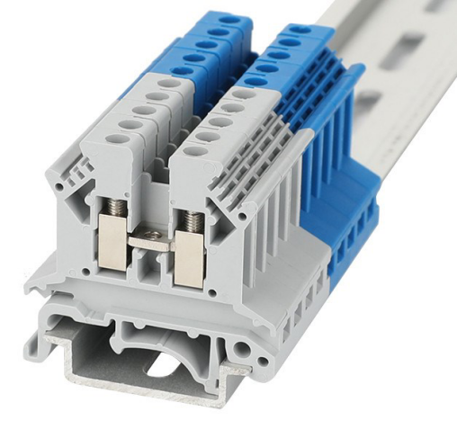 Terminal blocks are commonly mounted on some form of DIN rail. This metal rail derives its name from Deutsches Institut fur Normung (DIN), the German standards body that published the original rail specifications. Terminal blocks may be manufactured to fit one of several DIN rail sizes: