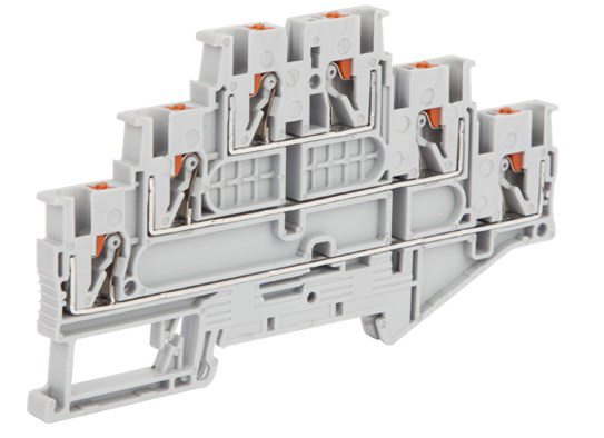 Three level terminal blocks are essentially dual level products with an extra stacked level of contacts. Like dual level terminal blocks, they can also be bridged.