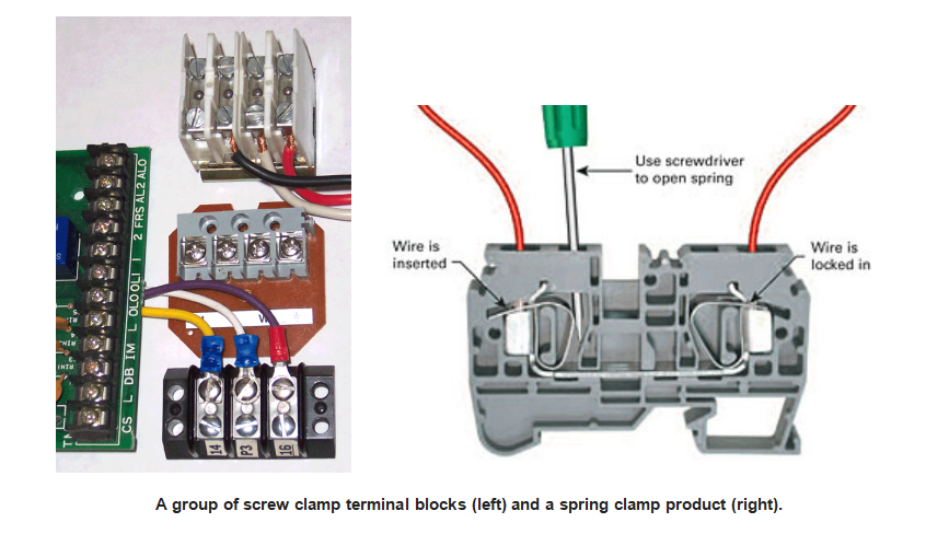 Terminal blocks may use one of several different methods to achieve wire connection.